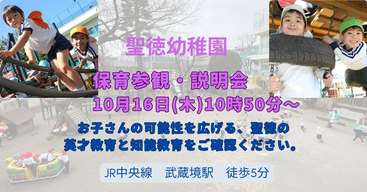 聖徳幼稚園 保育参観・説明会 10月16日(木)のご案内
